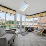 To the rear, the property has been enhanced with a bright garden room extension. With skylight window and full-height glazing incorporating French doors, this space seamlessly connects indoor and outdoor living. It is currently arranged as an additional sitting area but offers excellent flexibility as a playroom, home office or entertaining space.