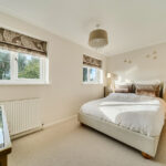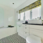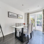 Upstairs, all three double bedrooms come with built-in wardrobes and new radiators, while the principal bedroom includes a modern en-suite with quartz-sparkle flooring, Bristan shower with overhead and handheld rose, Grohe tap, and built-in WC and cabinetry. The family bathroom is finished to an equally high standard, with Bristan fittings, a shower over the bath, glass screen, black-and-white mosaic marble floor, and built-in cabinetry with black quartz worktop.