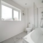 Upstairs, you’ll notice the elegant wainscoting that adds charm and character to the landing and continues throughout the home. There are three generous double bedrooms and a stylish family bathroom on this floor – with two of the bedrooms benefiting from their own en-suites and front-facing green views. The principal bedroom also boasts full-width built-in wardrobes.