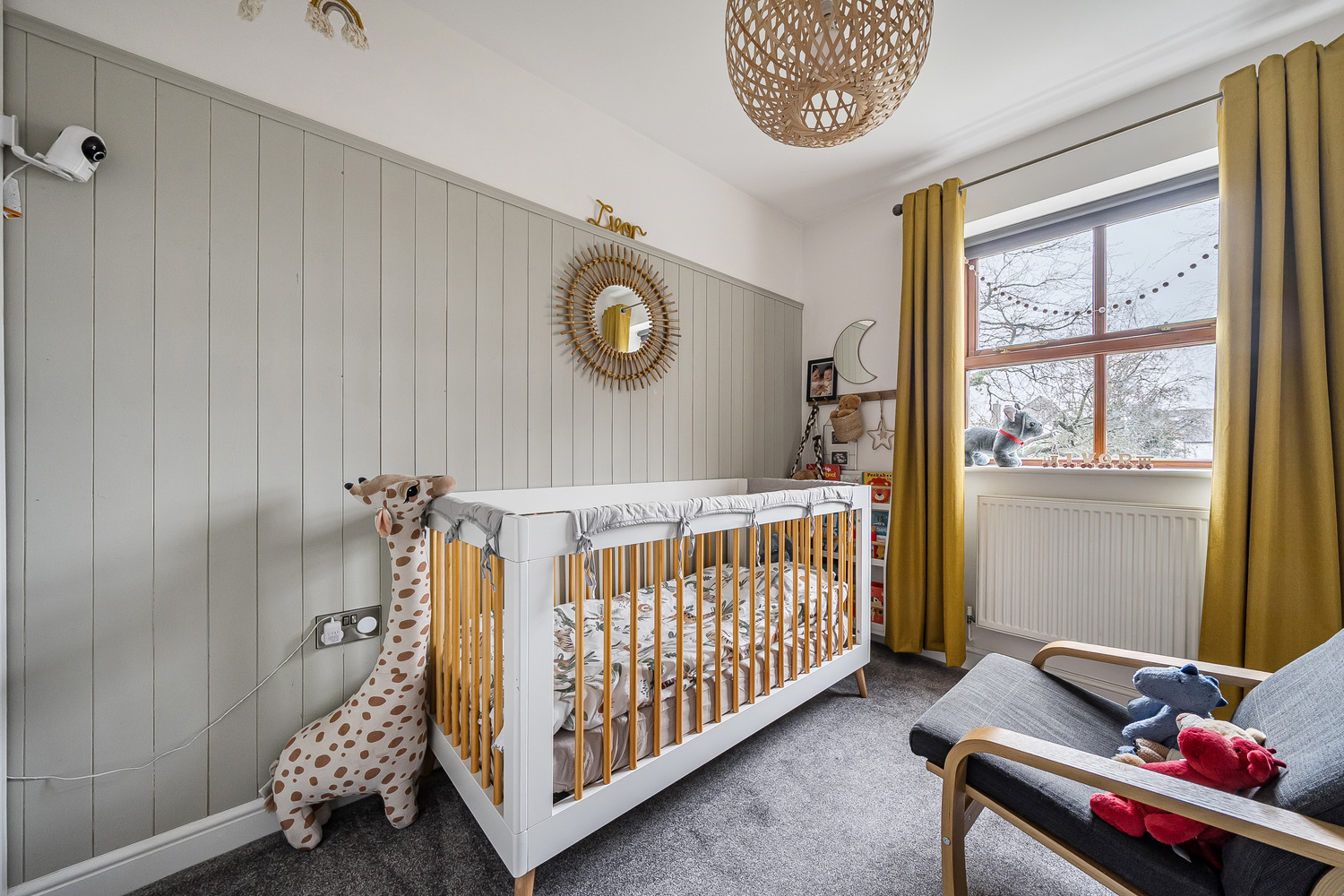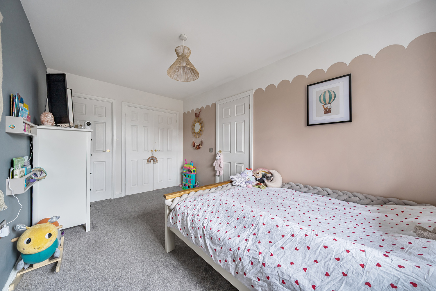 Upstairs, the property offers well-balanced bedroom accommodation ideal for family life. The principal bedroom is spacious and stylishly finished, with feature panelling adding character and depth. The remaining bedrooms are generous and versatile, perfectly suited for children, guests or home working.