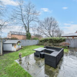 The rear garden is a standout feature, fully enclosed and predominantly laid to lawn with a generous paved patio seating area. It provides the ideal balance of space for children to play and adults to entertain.