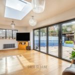 Then there’s the fabulous family room, the welcoming sitting room with its impressive inglenook fireplace and Clearview wood burner, and the sun room – added in 2020 – with its striking sky lantern and aluminium bi-fold doors that flood the space with natural light. When opened on warmer days, those doors create a seamless flow out to the garden – perfect for sunny afternoons and unforgettable garden parties.