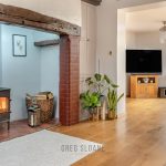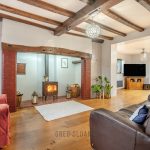 Inside, you’ll find an abundance of character across multiple reception rooms – from exposed original timbers and handmade oak kitchen cabinetry to quarry-tiled floors and wide original oak floorboards (still tucked beneath the upstairs carpets).