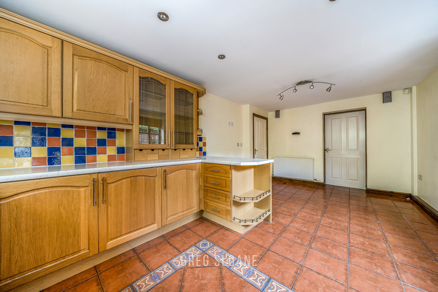 Two further reception rooms offer flexibility – perhaps a formal dining room, a snug, or a home office. The kitchen, with casual dining space, provides plenty of storage and worktops for family meals and weekend entertaining, with a utility room and access to the large double garage tucked just beyond.
