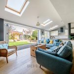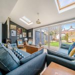 Timber flooring and sleek aluminium bi-fold doors allow natural light to flood in, offering a lovely view across the green and leafy garden. When the weather’s right, open them up to create a brilliant indoor-outdoor entertaining space – your garden parties will be the stuff of legend!