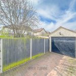 Driveway parking leads to a detached single garage with pitched roof. Rear access to the garden.