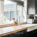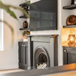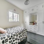 Upstairs, you’ll find three bedrooms on the first floor, all with built-in storage. The showstopper here is the bathroom – a striking mix of dark and light finishes, with a large walk-in shower with overhead rain shower that’s sure to impress.