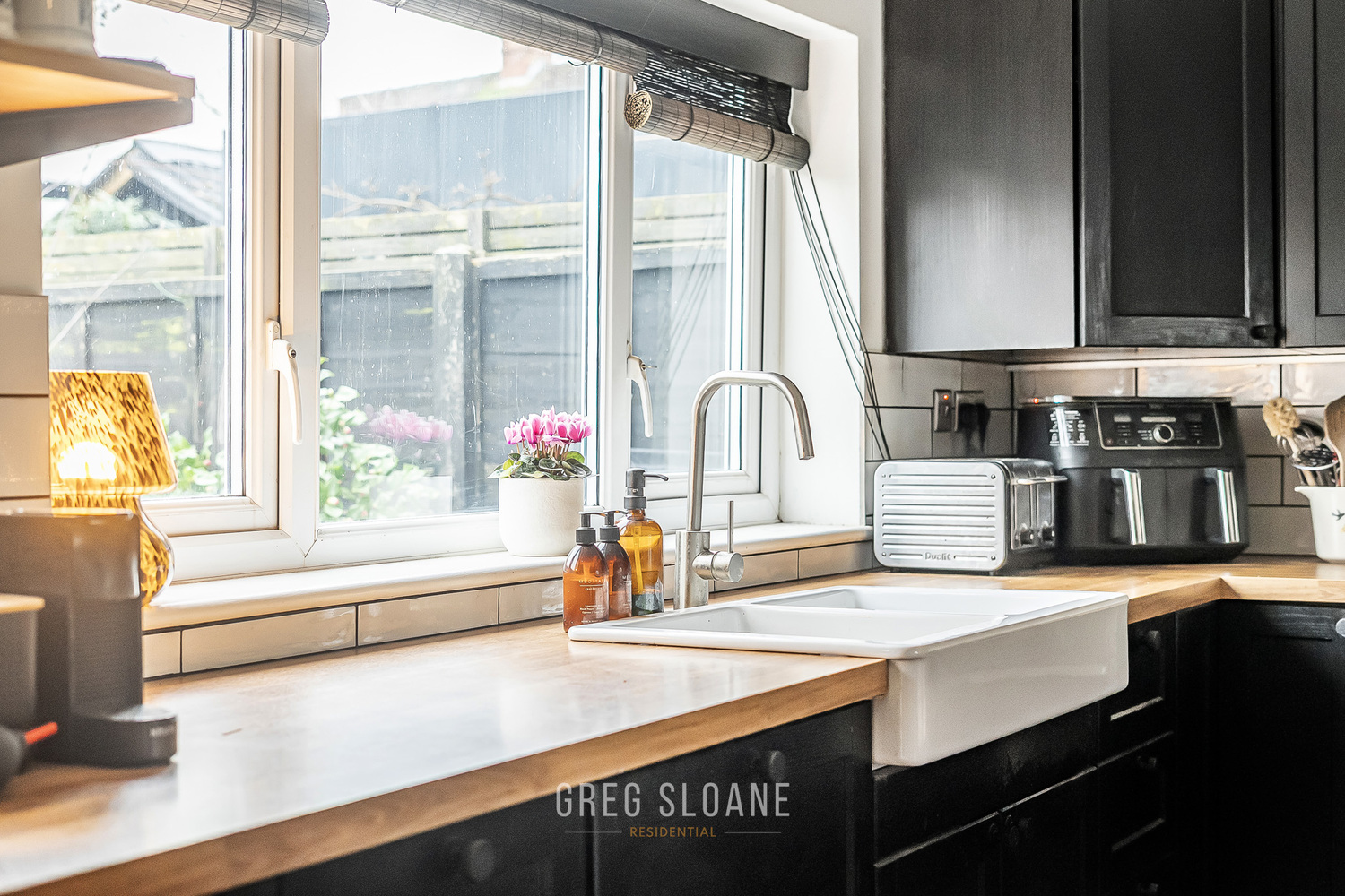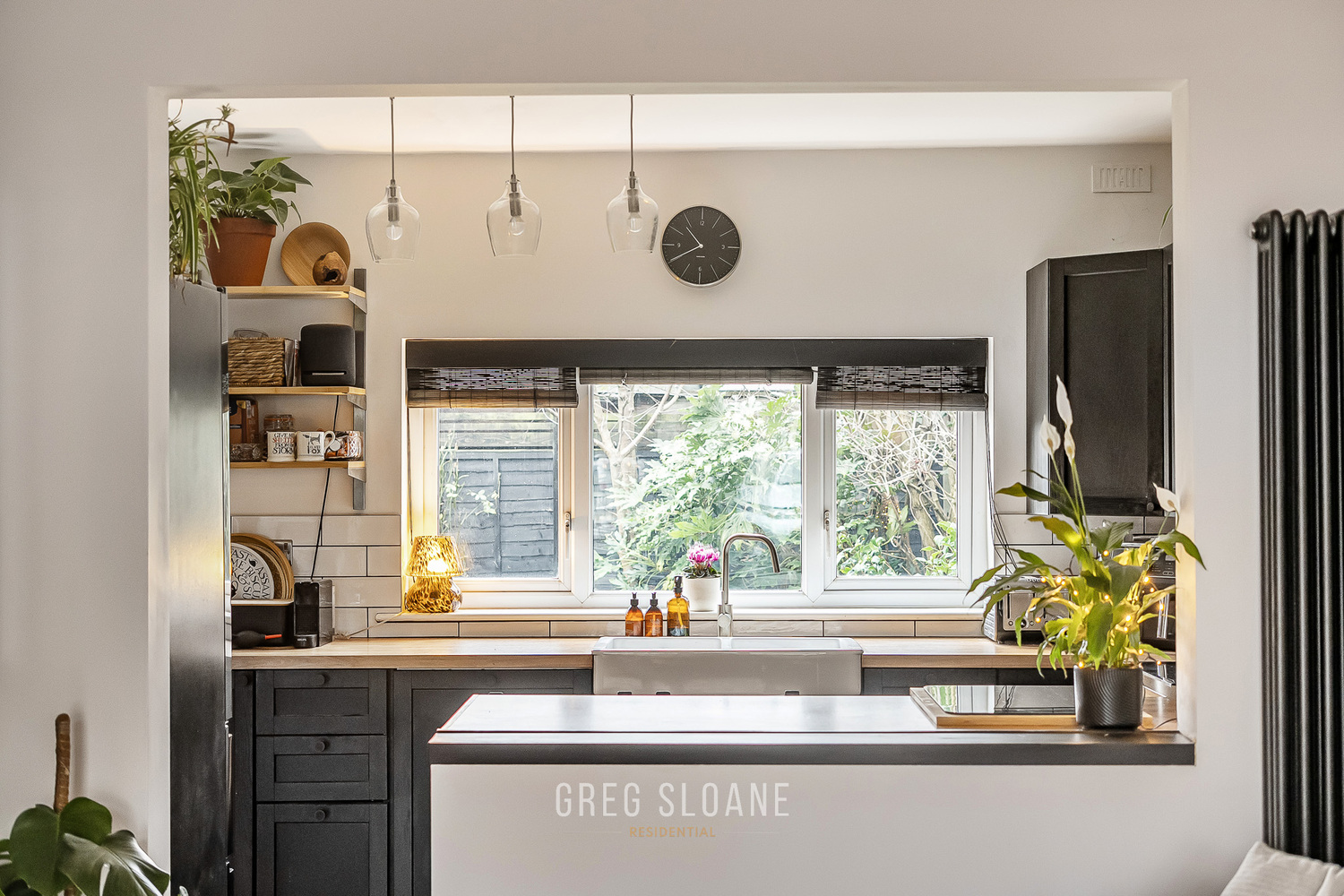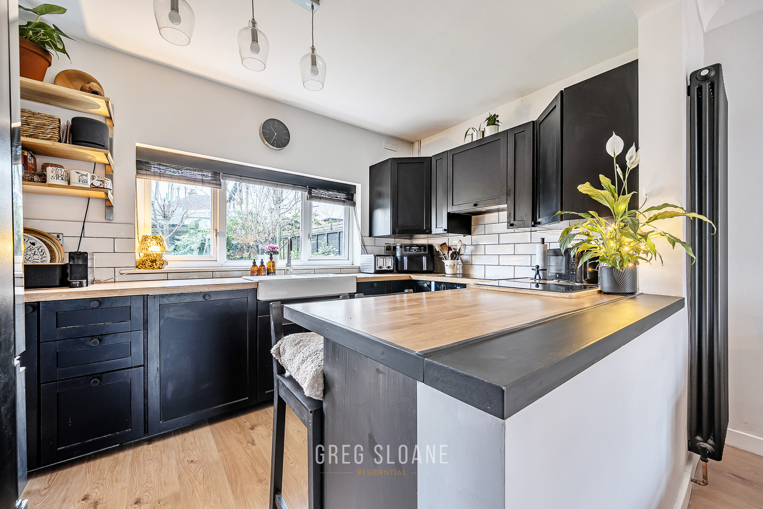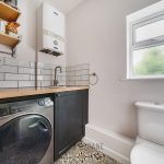 The kitchen, newly fitted in 2023, is a fabulous space for cooking up a storm, with wooden units, lots of worktop space and a double Belfast sink that overlooks the private, leafy garden. Off the kitchen is the ‘lootility’ – a clever combination of cloakroom and utility room, finished in the same smart style. No compromises here!