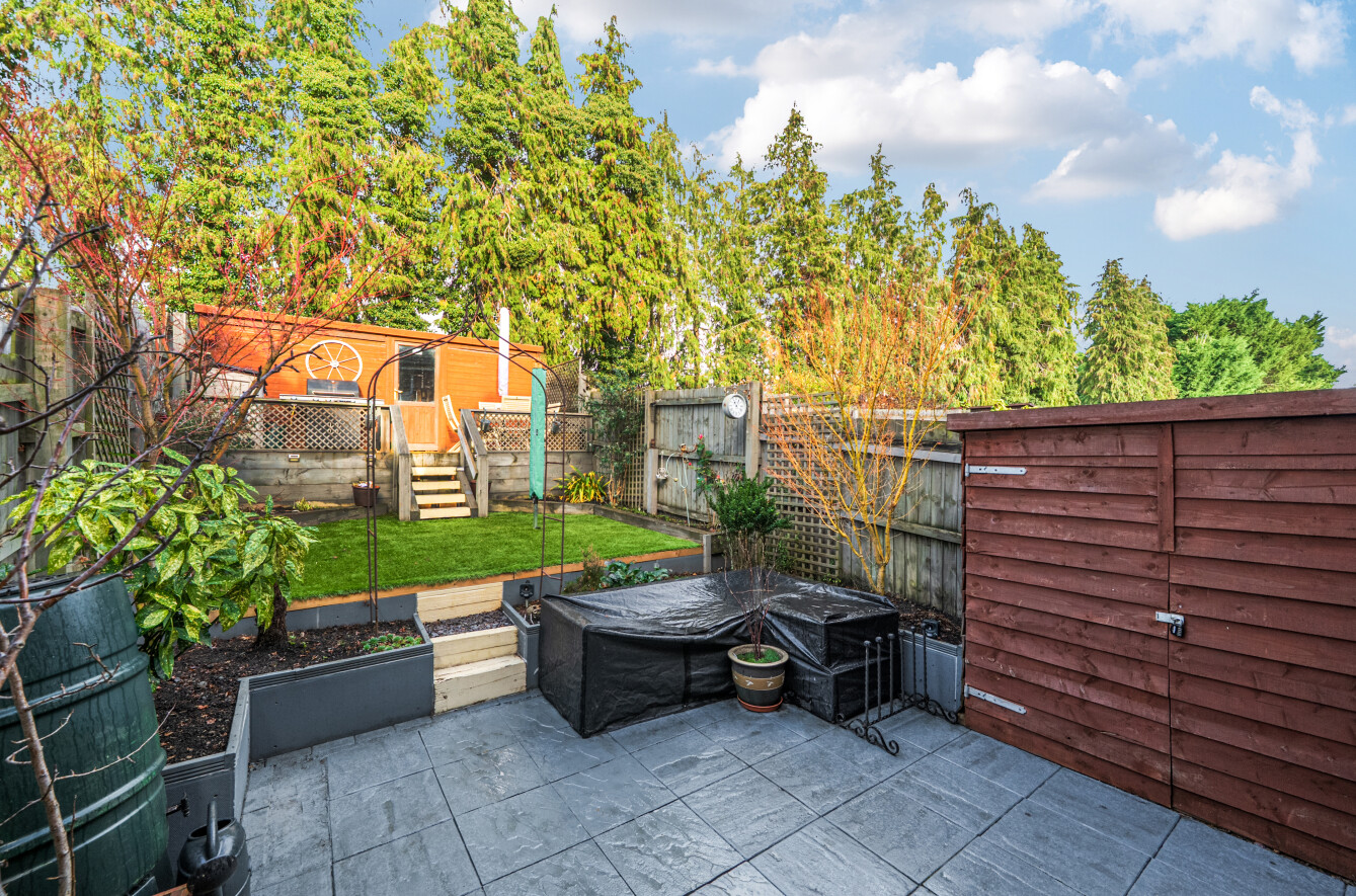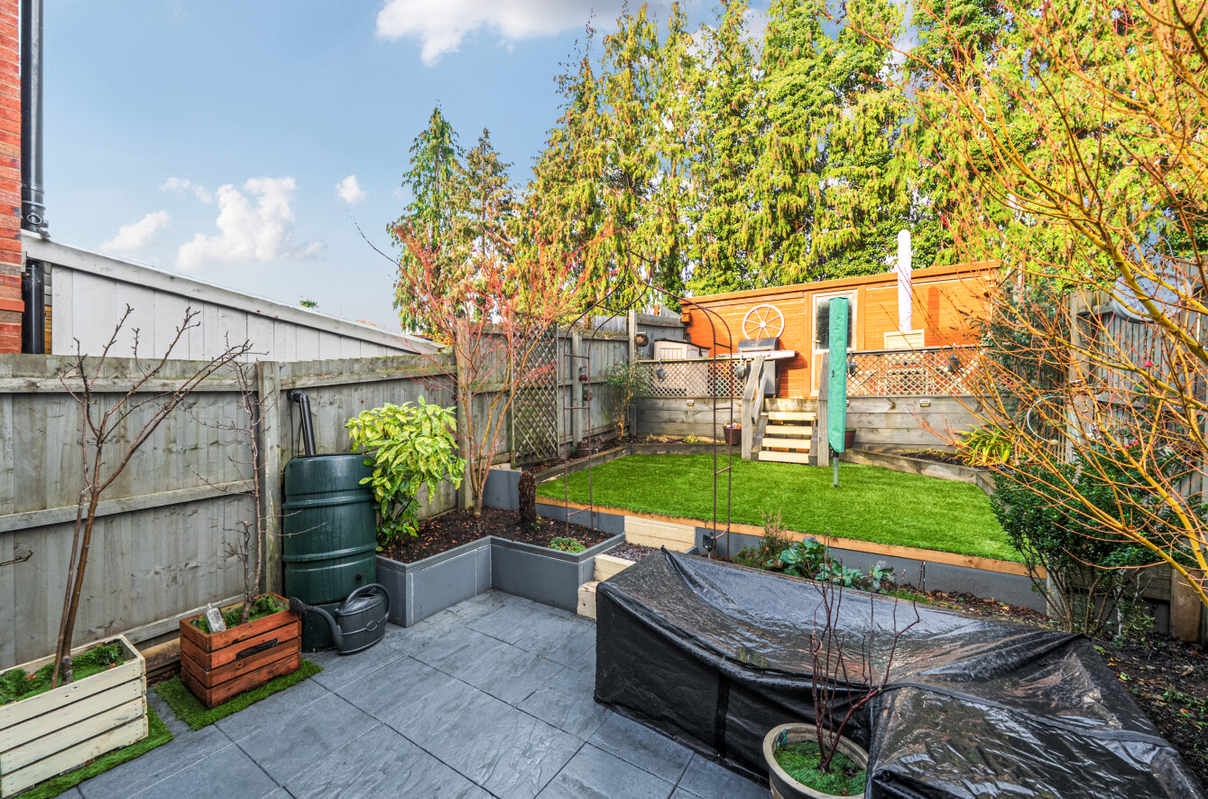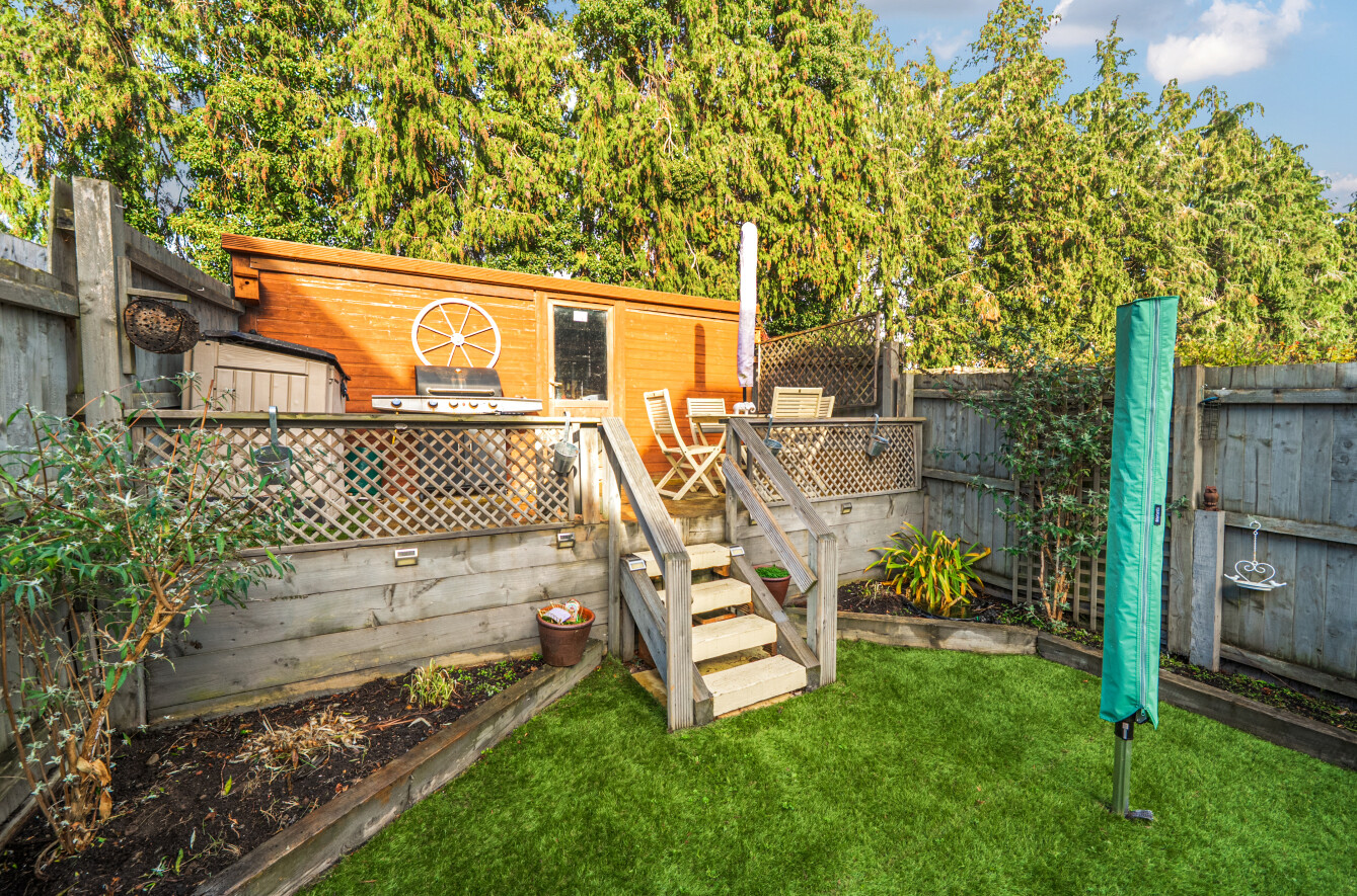 The beautifully re-landscaped rear garden is a standout feature, enjoying a high degree of privacy and offering excellent outdoor space. A versatile shed/workshop with electric sits at the bottom of the garden, ideal for hobbies, storage, or practical workspace needs.