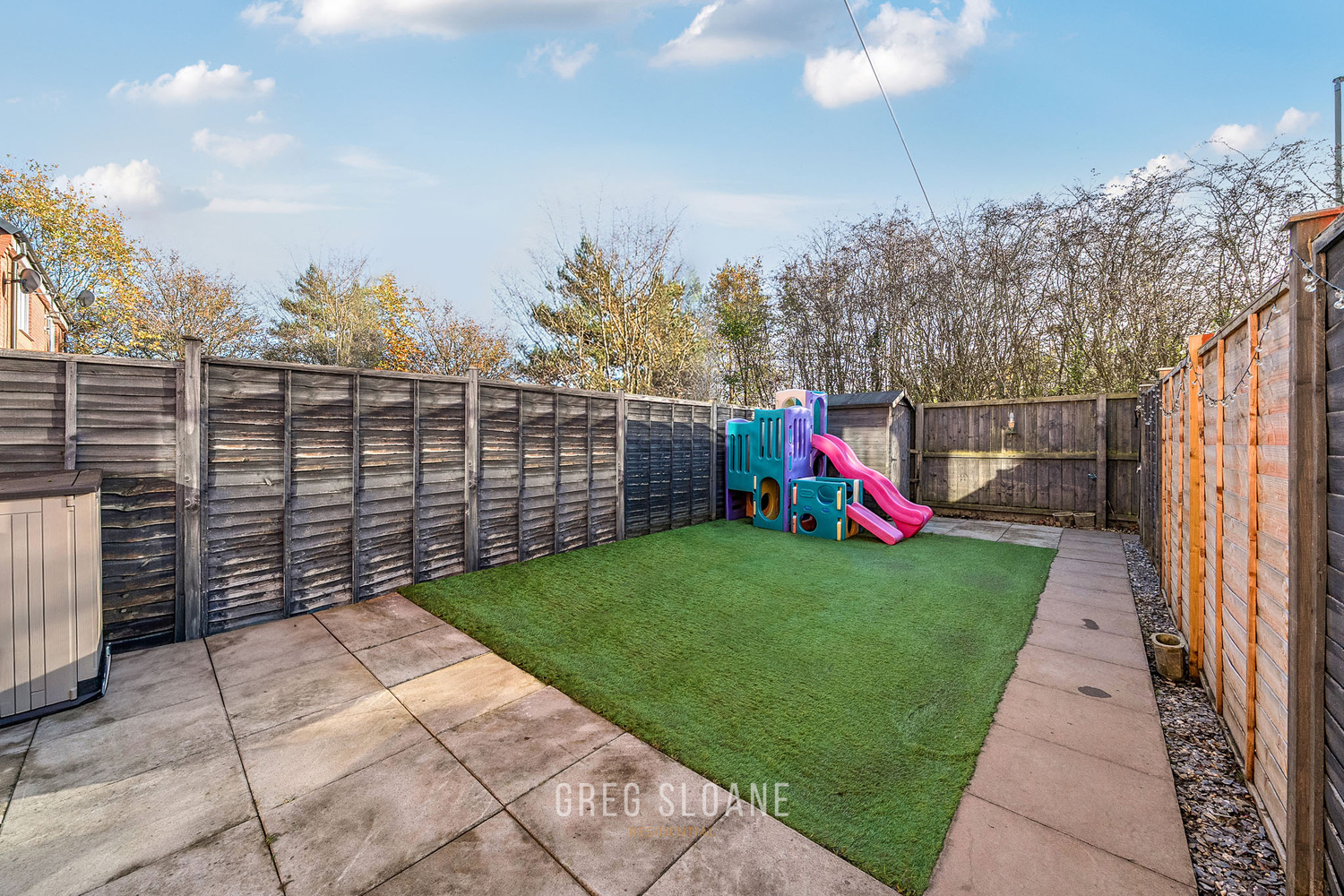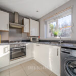 Patio doors open straight out onto the sunny south-facing garden, making indoor-to-outdoor living effortless. The garden has been astro-turfed for easy upkeep, giving you a clean, usable space all year round – perfect for relaxing, entertaining, or letting little ones play. There’s also a useful shed at the bottom for extra storage.