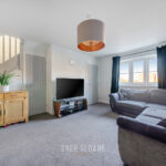 Step into the entrance hall (with a handy downstairs WC) and through to the lovely living room. The layout flows beautifully into the kitchen diner – a bright, social space with integrated cooking appliances, plenty of worktop space and room for your white goods – everything a modern household needs.