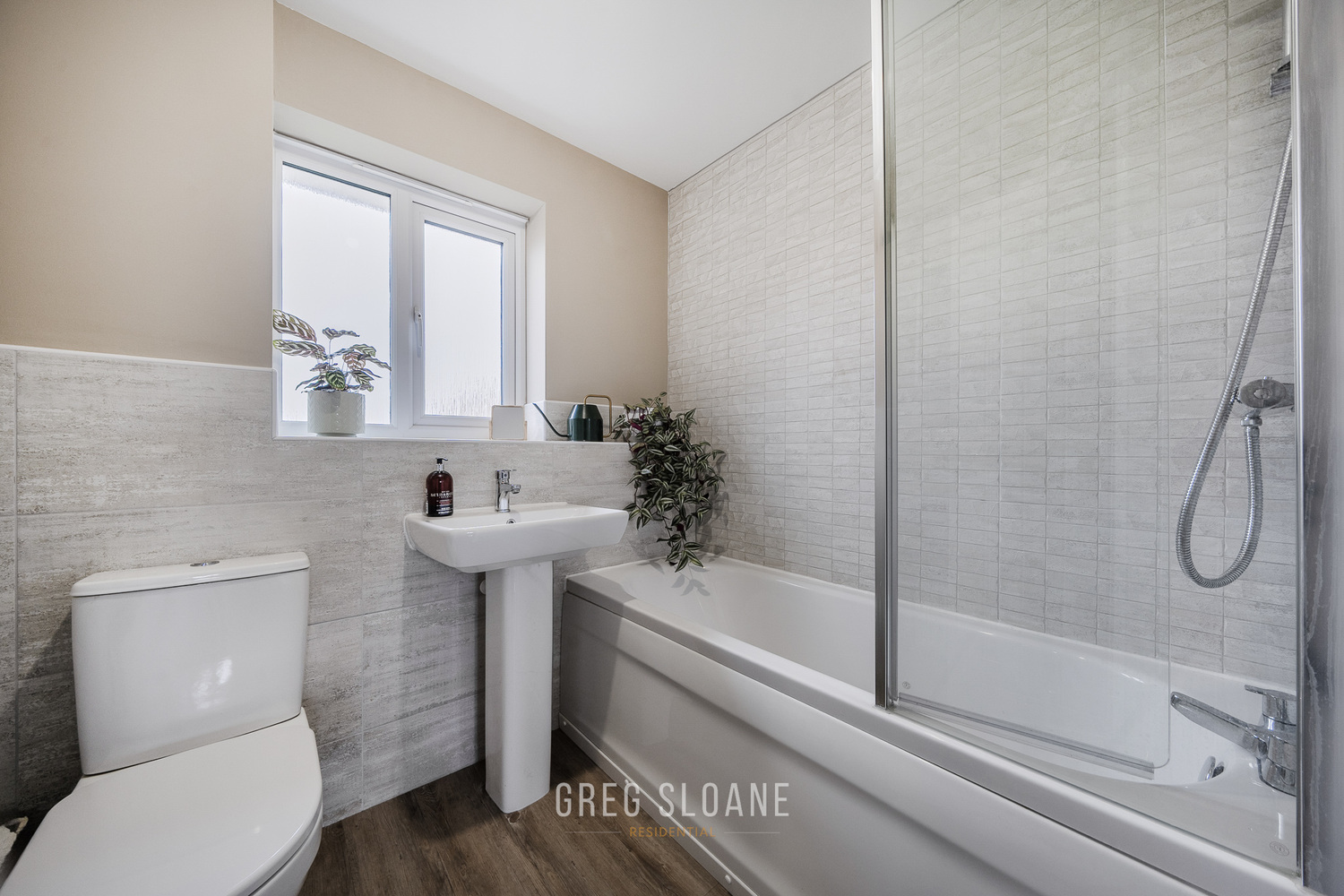 Upstairs, a light-filled central landing leads to four well-proportioned bedrooms and the family bathroom. Three are doubles, while the fourth is a generous single. The main bedroom also benefits from its own ensuite shower room.