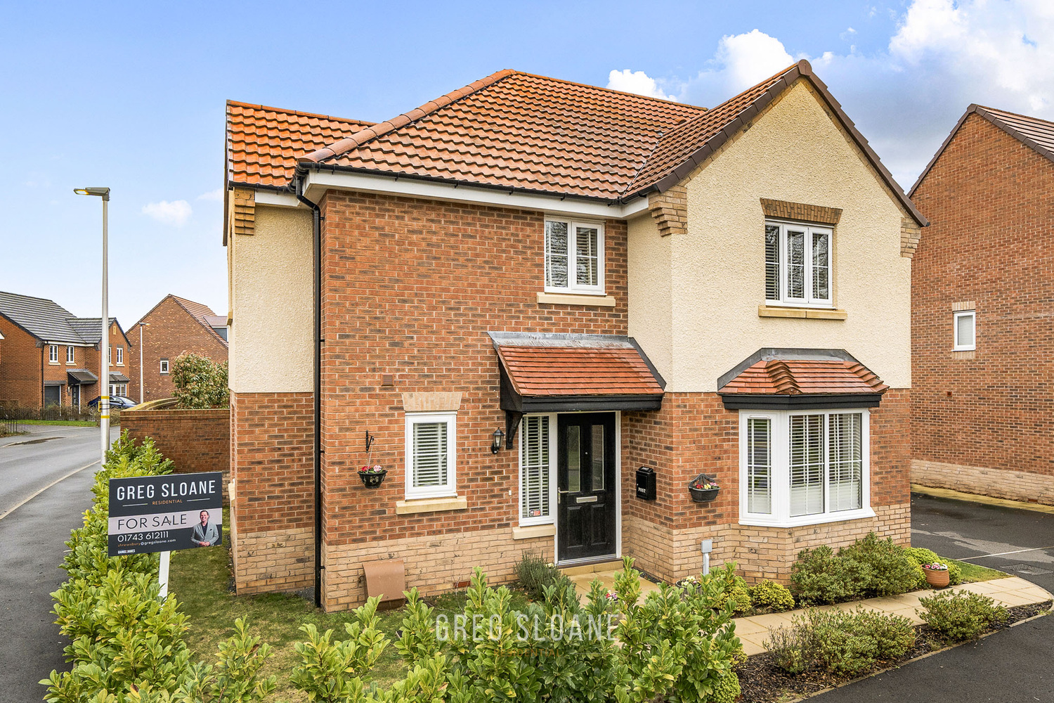 Tucked away on the eastern fringe of Shrewsbury within the sought-after Weir Hill Gardens development, this beautifully presented four-year-old home enjoys a particularly lovely position overlooking a small leafy green – and just a two-minute stroll from the banks of the River Severn.