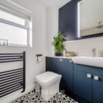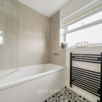 Upstairs, you’ll find three bedrooms – two doubles and a single – all with built-in storage. The family bathroom, refitted in 2023, feels crisp, clean and stylish.
