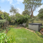 Outside, the garden is a real treat. A bespoke tiled patio leads to a private, enclosed garden with a leafy outlook – a peaceful spot for morning coffee in the sunshine or evening drinks with friends.