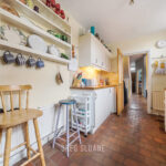 On the ground floor, you’ll find two inviting reception rooms. The living room features a log burner – perfect for those cosy winter evenings – while the dining room has tall sash windows that fill the space with natural light and offer lovely glimpses of the garden.
