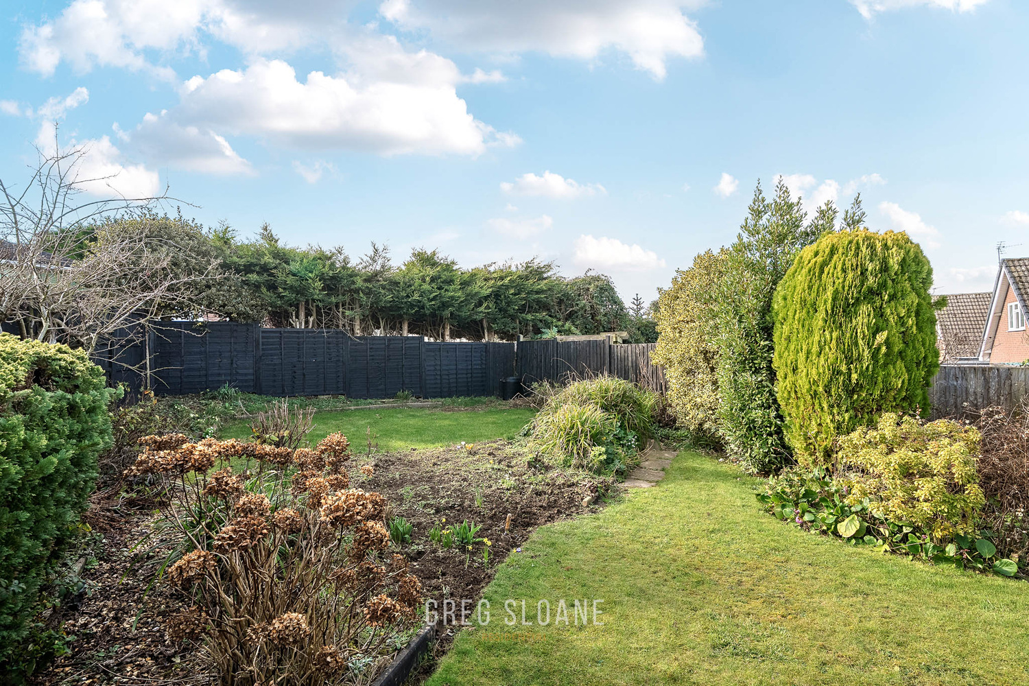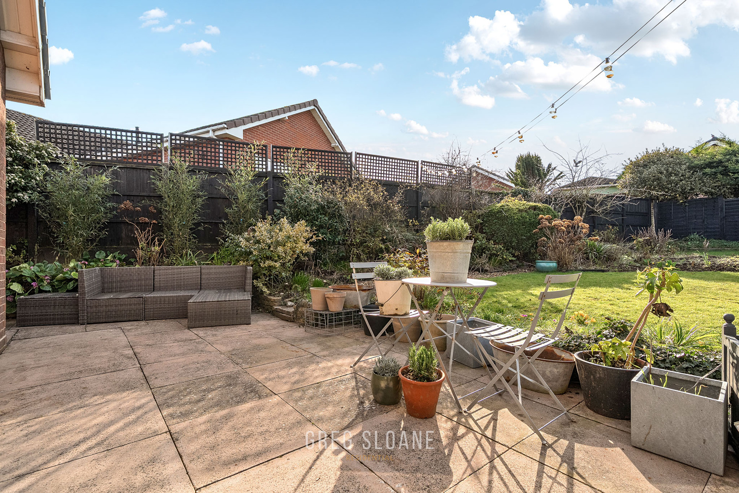 The garden deserves a special mention. South-westerly facing, it enjoys sun well into the evening. A patio area provides the ideal spot for outdoor dining, while the lawn is interspersed with established shrubs and specimen trees, creating a private, leafy backdrop.
