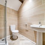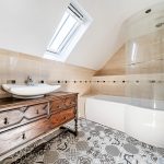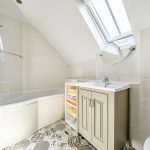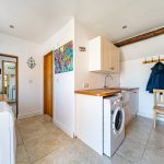 Beyond the kitchen is the spacious utility room, with built-in cupboards (perfect for coats and wellies), and another Belfast sink. There’s space for a washer/dryer and easy access to the outside via a traditional barn door – no barn conversion would be complete without one!