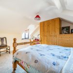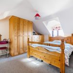 A spacious room with fitted carpets and dual-aspect UPVC double-glazed windows to the front and rear. The rear window offers stunning views over the garden and open countryside. The room also features a fitted wooden wardrobe, a matching chest of drawers, and a dressing area.