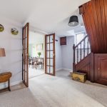 The property is accessed via a UPVC front door with a glazed panel, leading into a welcoming entrance hall. Tiled flooring transitions into fitted carpets, with a carpeted staircase rising to the first floor. A useful understairs storage cupboard provides additional space, while an area has been thoughtfully planned for a table or desk.
