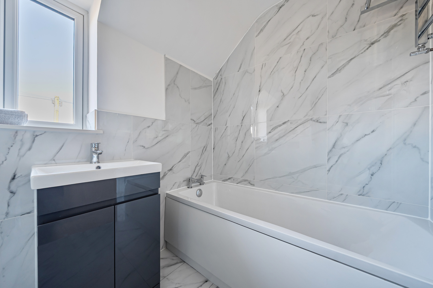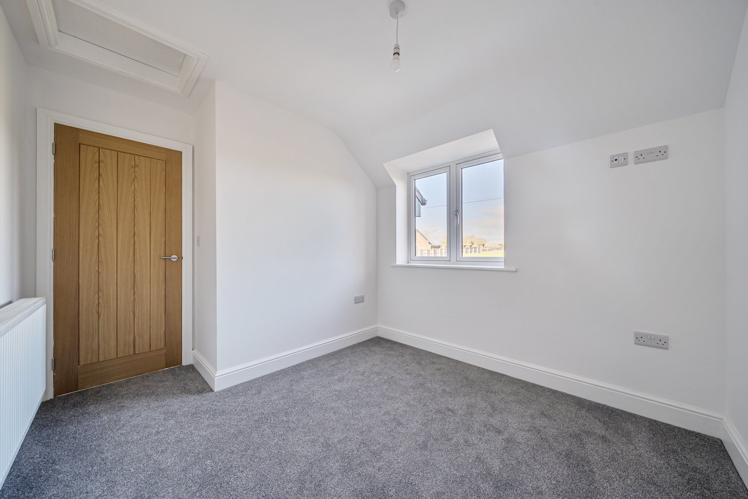 Comfort is assured throughout the year with underfloor heating to the ground floor and both upstairs bathrooms, powered by an air source heat pump for improved energy performance and lower ongoing costs. Upstairs offers three well-proportioned bedrooms, a contemporary family bathroom with bath and walk-in shower, and a light-filled principal suite with en-suite and Velux window.