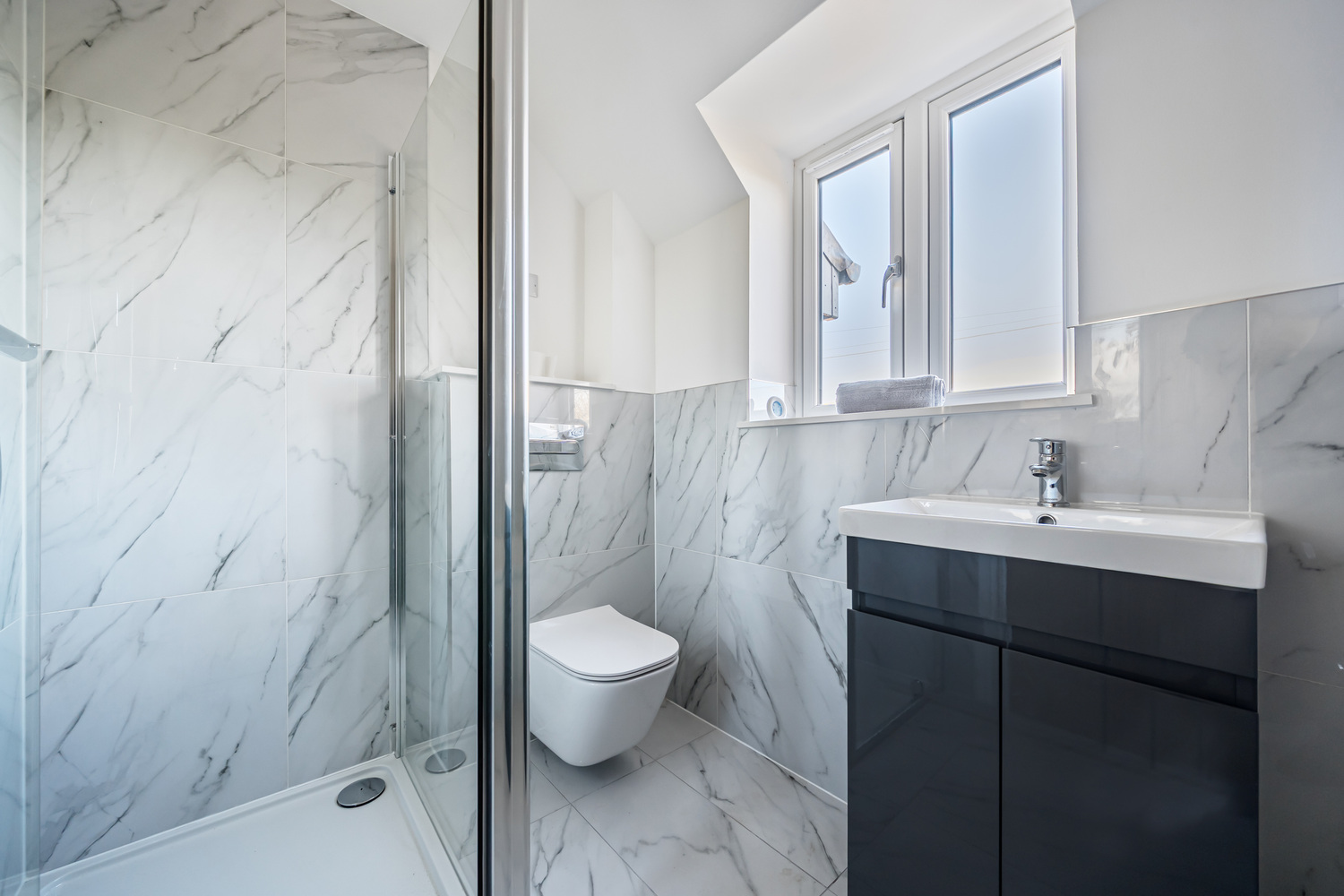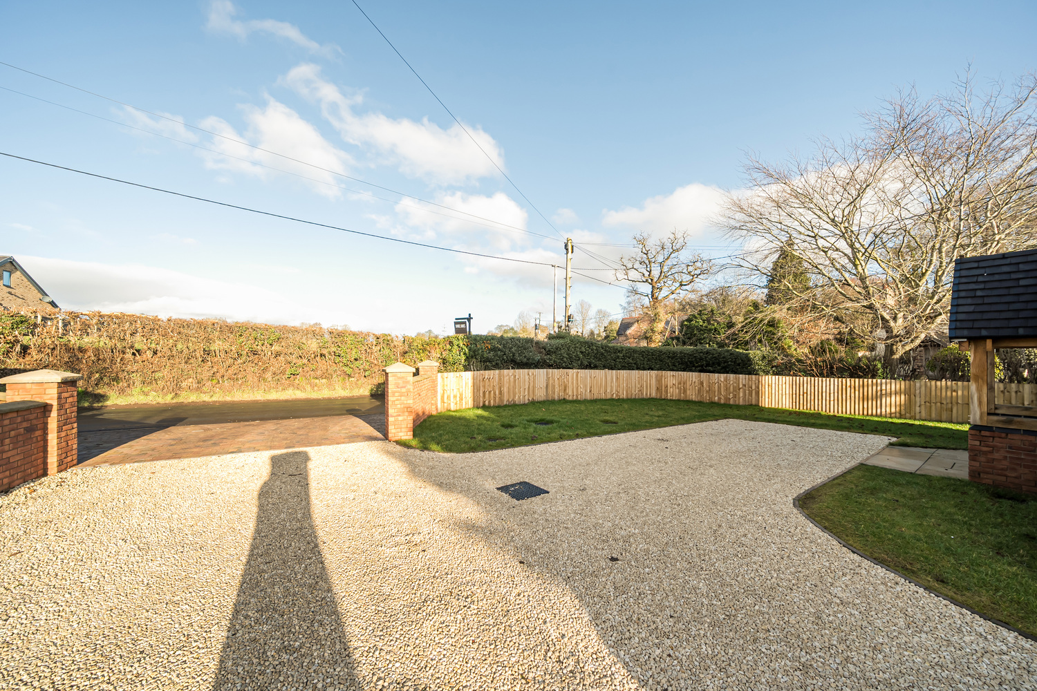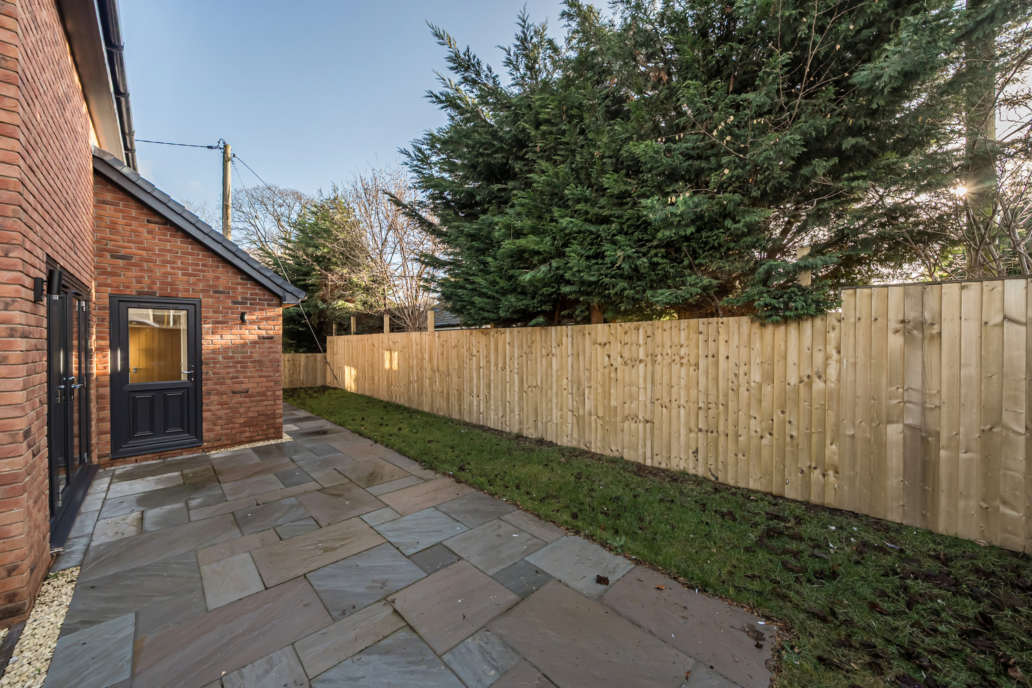 Externally, the property continues its low-maintenance appeal. A south-facing Indian stone terrace provides an inviting space for outdoor dining and relaxation, while the enclosed lawned garden offers privacy with minimal upkeep. A pebbled driveway delivers secure off-road parking and includes an electric vehicle charging point — ideal for modern lifestyles and future-proof living.