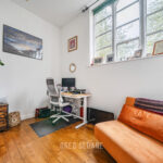 The second bedroom, currently used as a home office, benefits from dual-aspect windows and works just as well as a guest room, workspace, or creative studio.