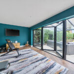 The Garage has been partially converted to create a superb Garden Room, ideal as a home office, gym, or entertaining space, with bi-fold doors opening directly onto the terrace for seamless year-round enjoyment.