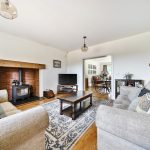 To the other side, the large living room features oak flooring, a gorgeous inglenook fireplace and log burner, and flows effortlessly into the heart of the home via the oak pocket doors – a stunning kitchen, dining and family room. This open-plan space spans the rear of the house, bathed in light from windows overlooking the garden. It’s the perfect layout for both everyday family life and entertaining.