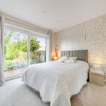 The principal bedroom overlooks the rear garden, with fitted wardrobes and sliding doors leading directly outside, a serene morning retreat. The remaining bedrooms are well-proportioned, offering flexibility for family, guests, or a home office.