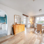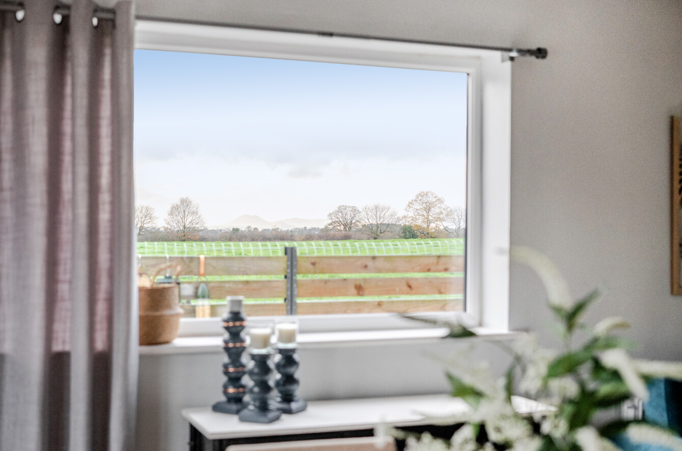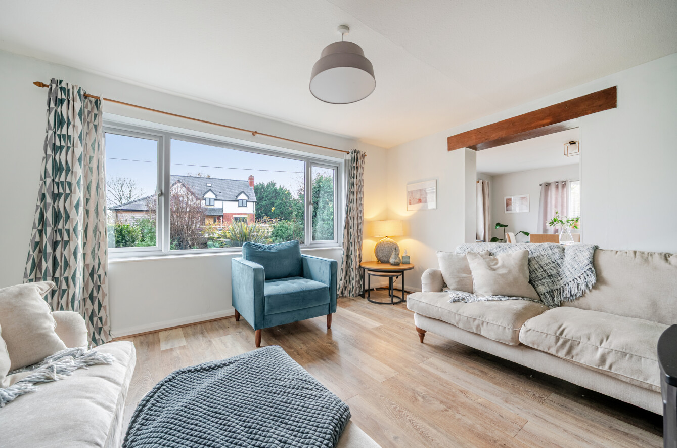 From the moment you arrive, the home welcomes you. A brick-paved driveway and raised flowerbed lead to a sleek anthracite front door, opening into a charming porch with patterned tiles. The hallway flows into three bedrooms and a stylish family bathroom, with contemporary fittings and generous space.The heart of the home is a bright lounge, complete with a feature electric log-burning stove and dual-aspect windows framing the countryside. The adjoining dining room, with a characterful exposed wood archway, is perfect for entertaining or family life.