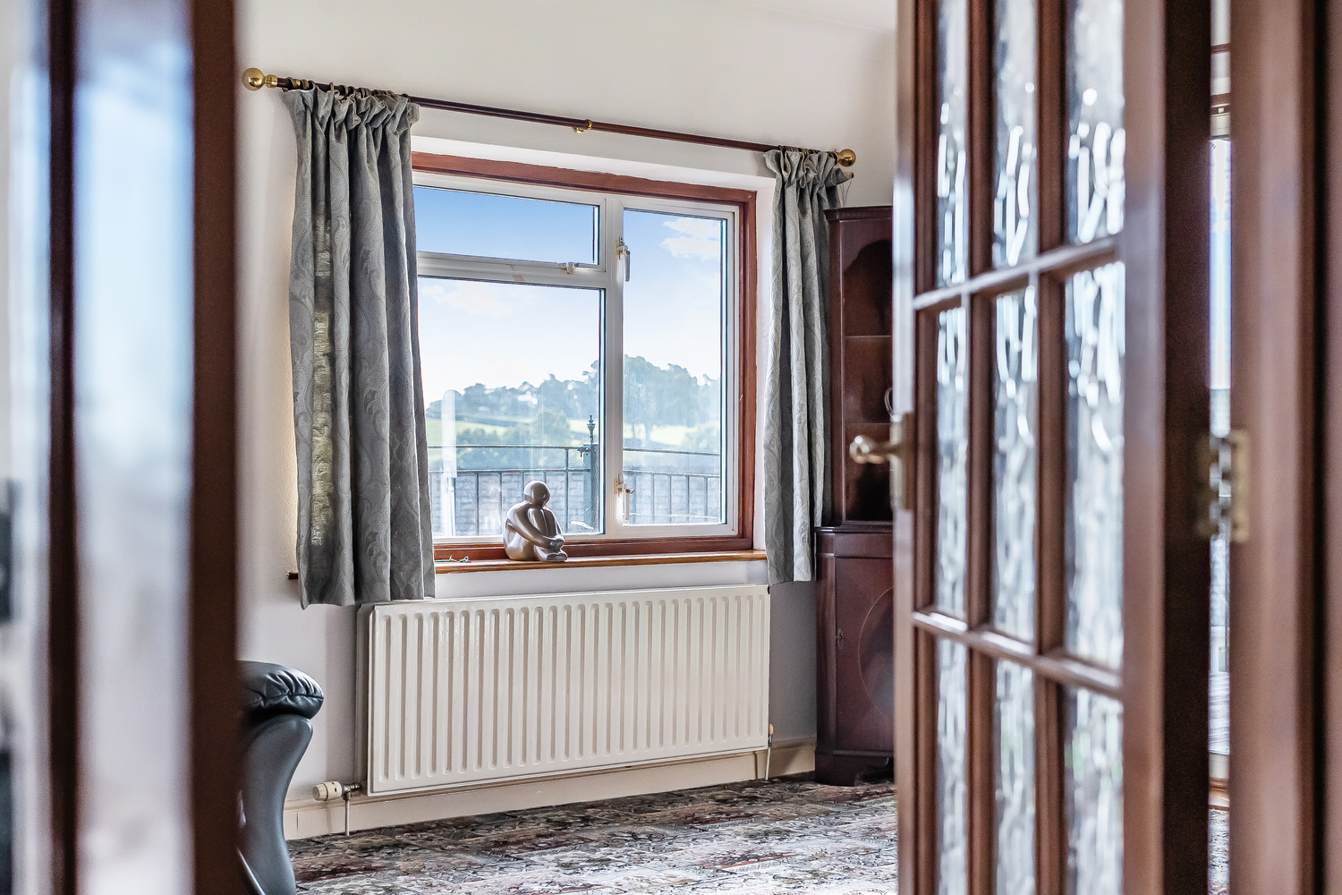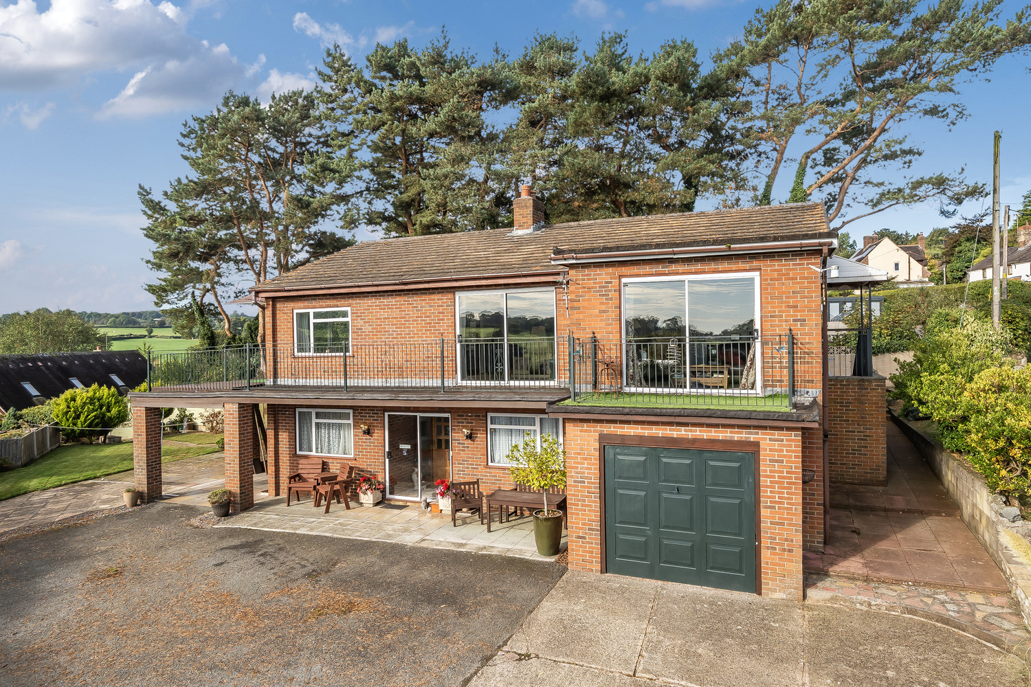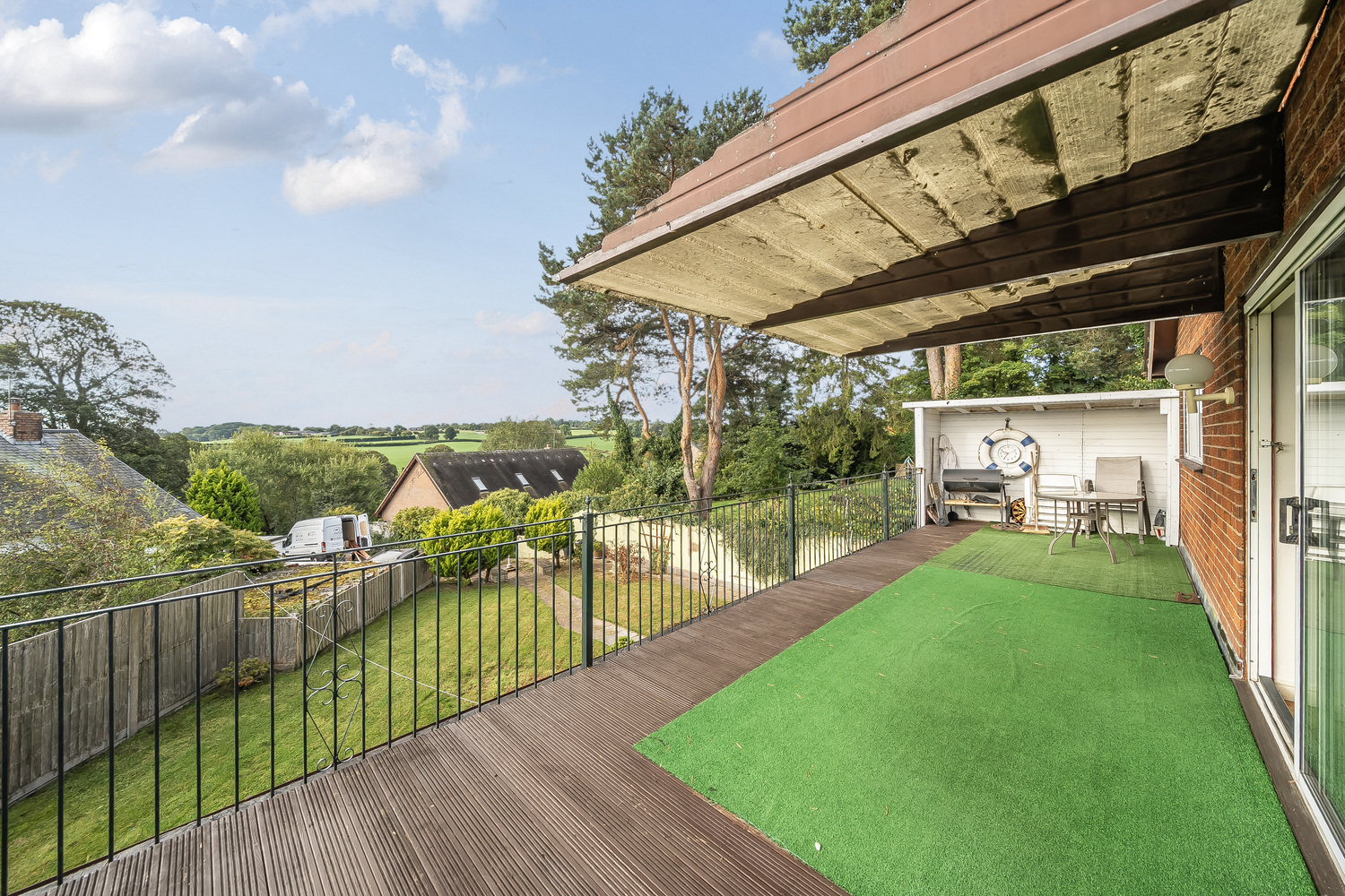 The property’s elevated position is one of its finest features, providing far-reaching views across open countryside. These vistas can be enjoyed from the first-floor reception room and the impressive wraparound balcony, which embraces the southern and western aspects of the home, a superb setting for entertaining, al fresco dining, or simply relaxing and taking in the landscape.
